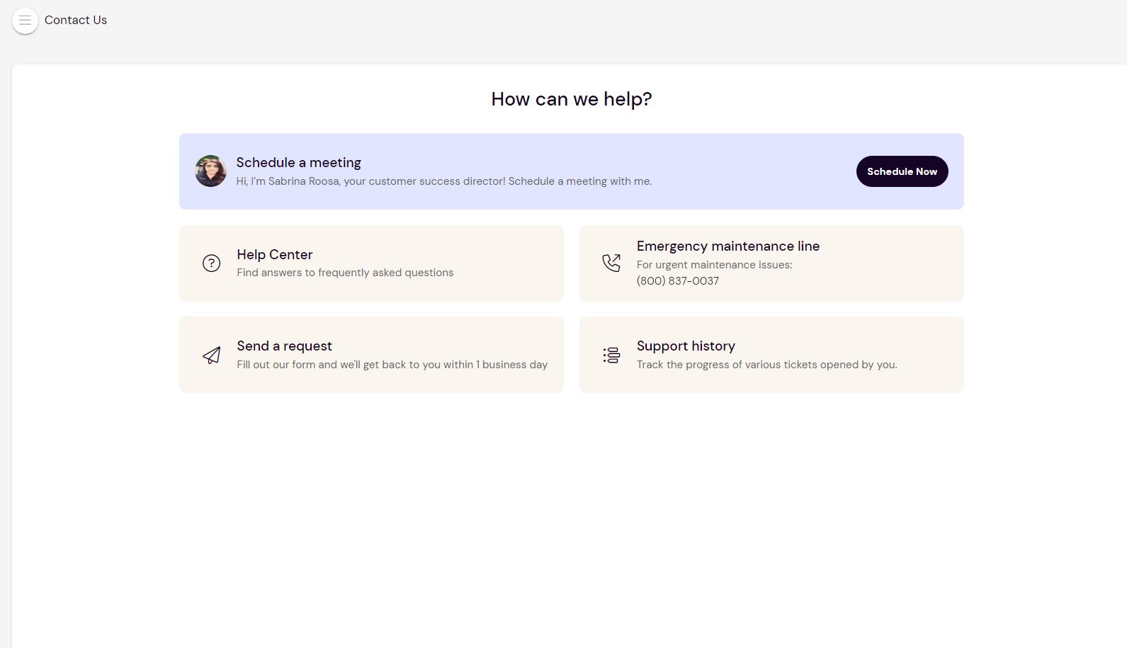 You can submit a ticket but accessing your owner portal, then navigating to the Get Help page. Here, select send a request and provide all the necessary information. A customer service representative will email or call you within 24 hrs. You will also find other methods to contact our team on the Get Help page.